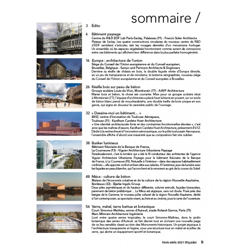 Dans ce numéro spécial “Hors-série 2021” de 5façades, vous retrouvez sept projets représentatifs du patrimoine du 21ème siècle. Car oui, ce sont ces projets emblématiques qui construisent notre patrimoine, aussi bien par leur architecture que par leur enveloppe. Ces dernières, esthétiques, performantes, pérennes et au service des occupants qu’elles protègent, s’imposent durablement comme la signature d’une exigence architecturable qui avance avec son temps. Ces bâtiments nous montrent aussi à quel point la diversité de ces systèmes façades et couvertures, développés par les industriels, les mettent en valeur. Et au-delà du talent de l’architecte, il y a celui des bureaux d’études façades, des façadiers et de leur compagnons : sans eux, rien n’est possible. Le numéro que vous avez en main salue tous ces savoirs-faire du 21ème siècle.