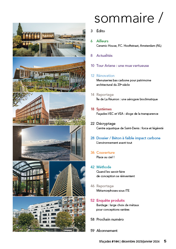 2023 s’achève dans un contexte plutôt morose : risque de récession, crises politiques internationales majeures. D’où les nombreuses d’incertitudes qui se répercutent bien sûr sur le secteur de la construction. L’année 2024 s’annonce sportive, et pas uniquement en raison de J.O.P. Les permis de construire dans le logement se sont écroulés. Et même si la rénovation et la commande publique tireront un peu le marché, ce ne sera pas suffisant pour éviter la casse… Essayons tout de même d’être optimistes. Ces dernières années, une partie du monde politique et surtout la majorité des acteurs du secteur ont pris conscience de la contribution réelle et positive qu’un environnement bâti de qualité peut apporter au bien commun. Pour beaucoup et pas seulement en France, ces constructions et rénovations pensées autrement sont gages de cohésion sociale, de résilience climatique dans le sens d’aptitude à résister au choc et de vitalité culturelle. Cette approche dépasse le simple cadre de l’architecture et de l’environnement, puisqu’elle met en avant une nouvelle manière d’aborder les constructions et leur impact sur la vie humaine et la nature, privilégiant la qualité de vie et le bien-être collectif. C’est du moins ce qui ressort des différents projets et démarches présentés dans 5façades. Alors en cette fin d’année, regardons le verre à moitié plein… et souhaitons-nous de bonnes fêtes.