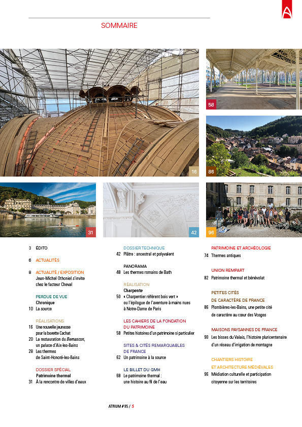 … ne sont pas tous agréables à entendre en ces périodes troublées, mais celui du ruisseau bruissant surs ses galets nous apaise, il évoque distinctement la Vie. L’eau nous constitue, présente dans le cosmos, elle est indispensable à notre existence. Ainsi, elle nous lie à notre environnement et à l’univers. La source vive rechargée par les minéraux de la terre est symbole de renaissance. Dès l’Antiquité, les hommes ont bâti de luxueux établissement de bains pour profiter de ces bienfaits. Avec l’explosion du thermalisme au 19ème siècle, de nouveaux temples furent érigés à ce culte de l’eau, donnant naissance à une architecture très créative. Cette atmosphère, que certains pourraient considérer comme surannée, est, au contraire, porteuse d’un apaisement bénéfique en phase avec notre nature. Aujourd’hui, les enjeux sont multiples, économiques et environnementaux, les villes d’eaux, devenues marques exportatrices d’un produit embouteillé, devront faire des arbitrages pour s’adapter au dérèglement climatique en cours et conserver leur âme.