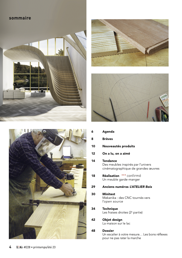 Toujours dans les formules qui marchent, vous découvrirez, dans les pages qui suivent, le projet d’une petite start-up bruxelloise autour de petits CNC destinés aux petits ateliers artisanaux ou de design, ainsi que des meubles directement inspirés de grandes licences littéraires et cinématographiques de l’univers de la fantasy.