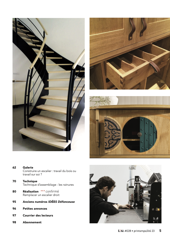 Bienvenue, donc, dans ce numéro qui vous permettra de faire (ou de refaire) le point sur tous les éléments à prendre en considération lors de la réalisation ou du remplacement d’un escalier, tant du point de vue esthétique que technique. Nous vous invitons d’ailleurs à vous attarder quelques instants sur le magnifique escalier présenté dans l’article sur la maison du lac. Puisse-t-il vous inspirer pour vos projets futurs